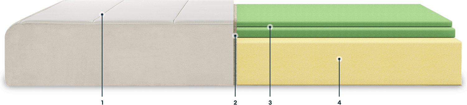 - The Core — Robust foam layer ensures minimum motion transfer and solid support.